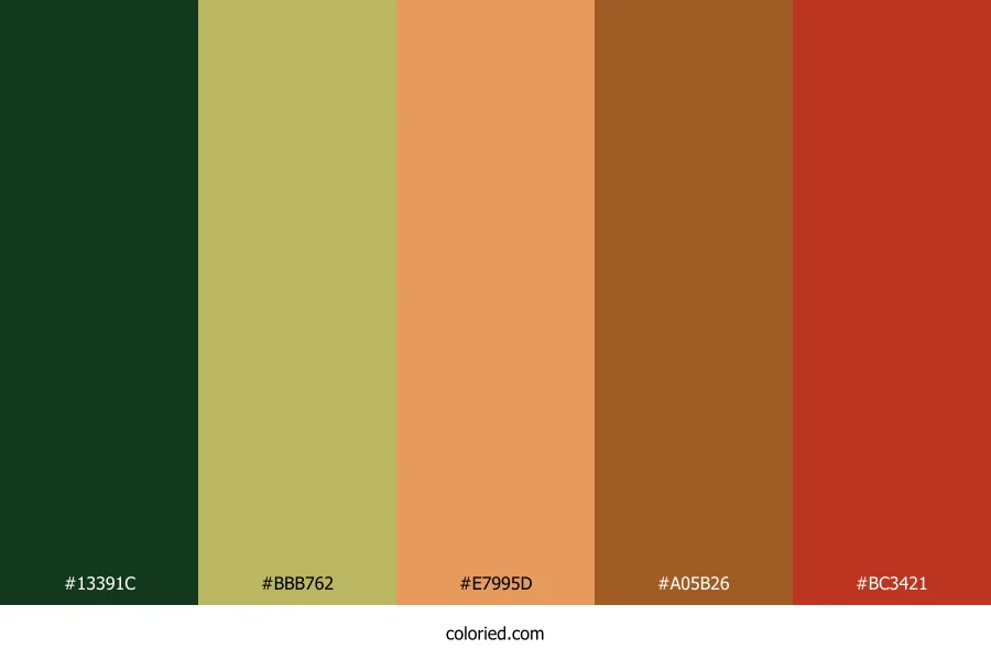 | #BC3421 | 188, 52, 33 | 7, 70%, 43% | 0%, 72%, 82%, 26% | oklch(0.530 0.176 31) |
