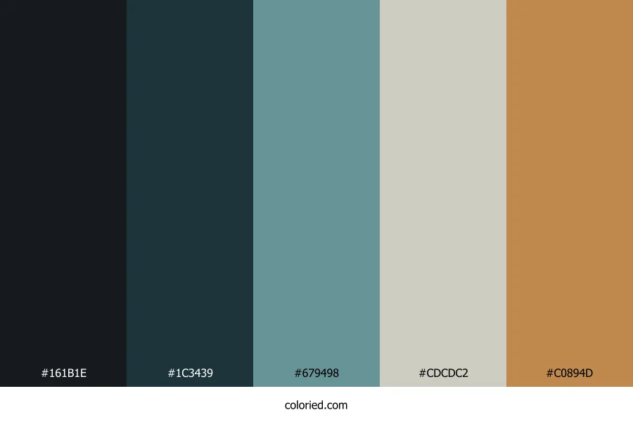 ![]() | #161B1E | 22, 27, 30 | 203, 15%, 10% | 27%, 10%, 0%, 88% | oklch(0.218 0.010 234) |