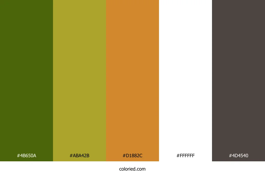 ![]() | #4B650A | 75, 101, 10 | 77, 82%, 22% | 26%, 0%, 90%, 60% | oklch(0.469 0.114 126) |