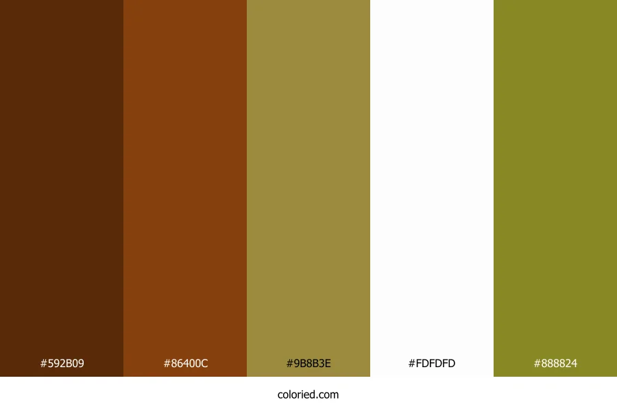 ![]() | #592B09 | 89, 43, 9 | 26, 82%, 19% | 0%, 52%, 90%, 65% | oklch(0.345 0.081 52) |