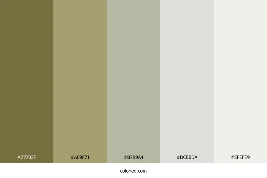 ![]() | #77703F | 119, 112, 63 | 52, 31%, 36% | 0%, 6%, 47%, 53% | oklch(0.540 0.069 101) |