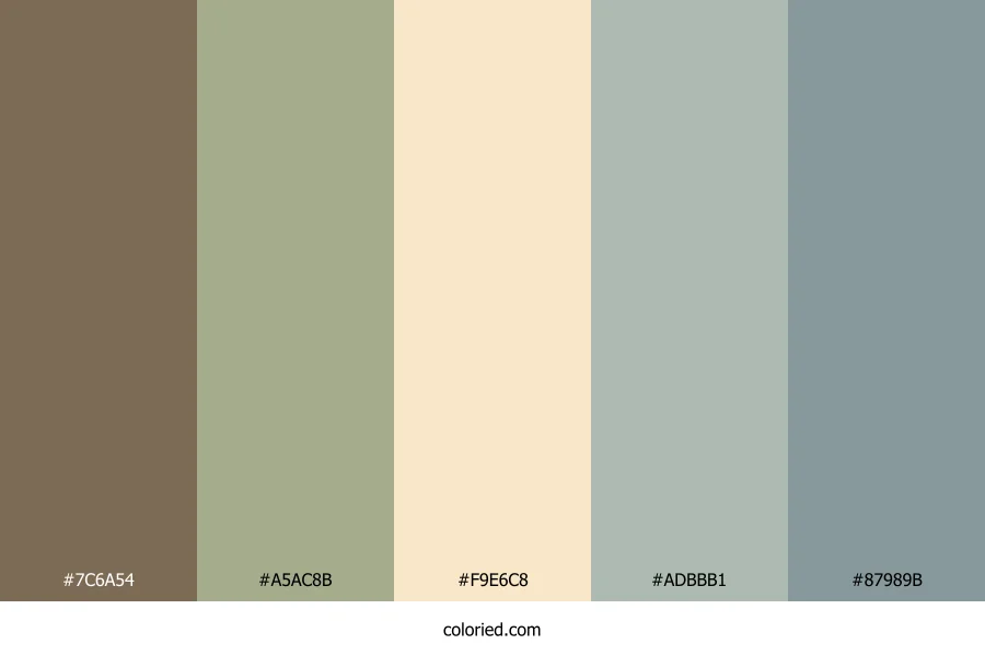 ![]() | #7C6A54 | 124, 106, 84 | 33, 19%, 41% | 0%, 15%, 32%, 51% | oklch(0.535 0.040 72) |