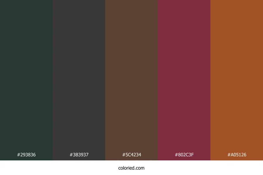 ![]() | #293836 | 41, 56, 54 | 172, 15%, 19% | 27%, 0%, 4%, 78% | oklch(0.327 0.020 186) |
