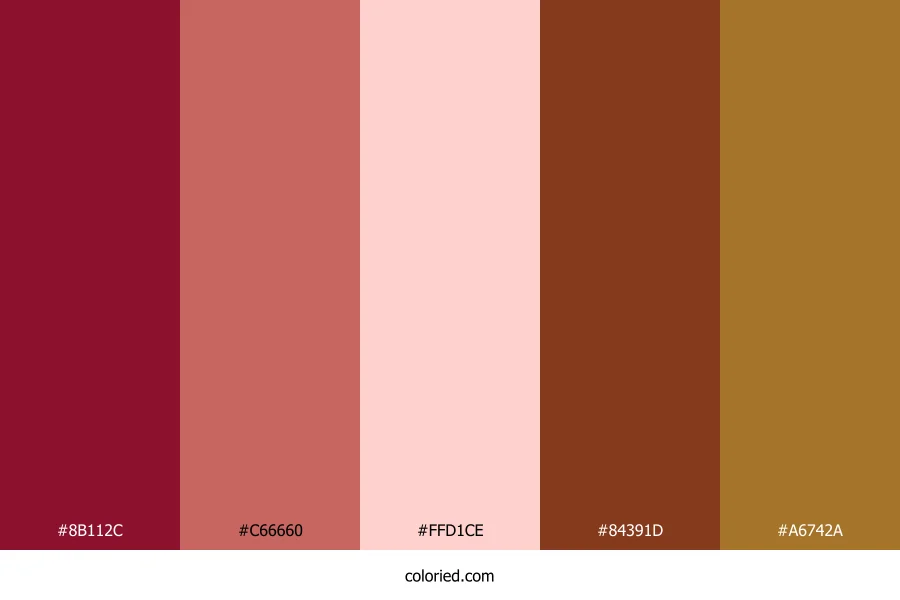 ![]() | #8B112C | 139, 17, 44 | 347, 78%, 31% | 0%, 88%, 68%, 45% | oklch(0.412 0.153 17) |