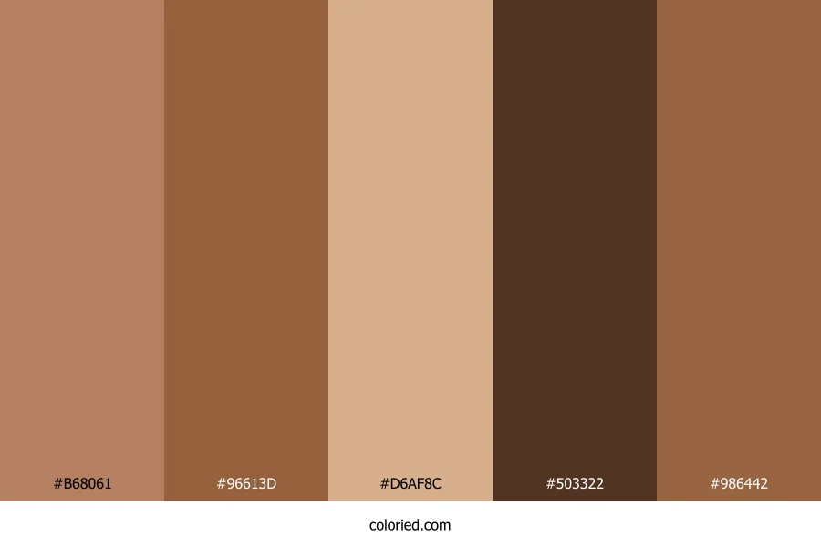 | #96613D | 150, 97, 61 | 24, 42%, 41% | 0%, 35%, 59%, 41% | oklch(0.542 0.086 54) | |