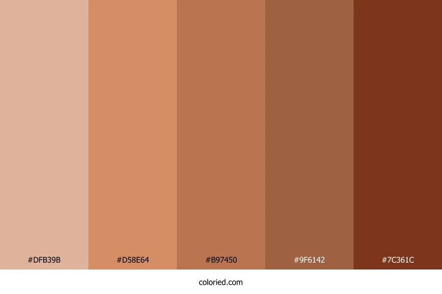 ![]() | #DFB39B | 223, 179, 155 | 21, 52%, 74% | 0%, 20%, 30%, 13% | oklch(0.800 0.061 50) |