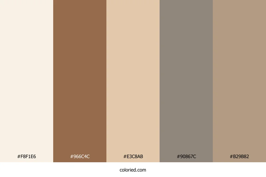 | #B29B82 | 178, 155, 130 | 31, 24%, 60% | 0%, 13%, 27%, 30% | oklch(0.703 0.044 69) |