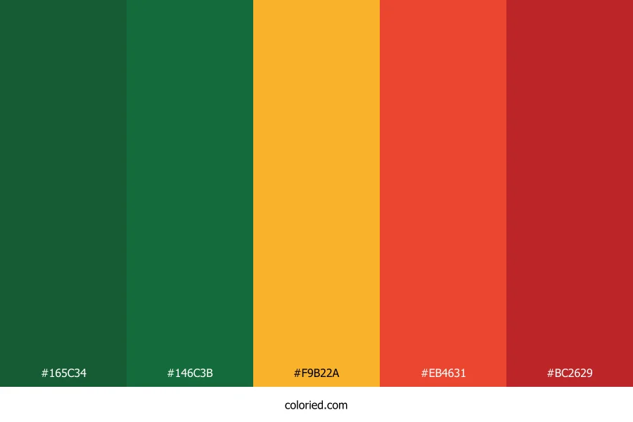 ![]() | #165C34 | 22, 92, 52 | 146, 61%, 22% | 76%, 0%, 43%, 64% | oklch(0.421 0.095 154) |