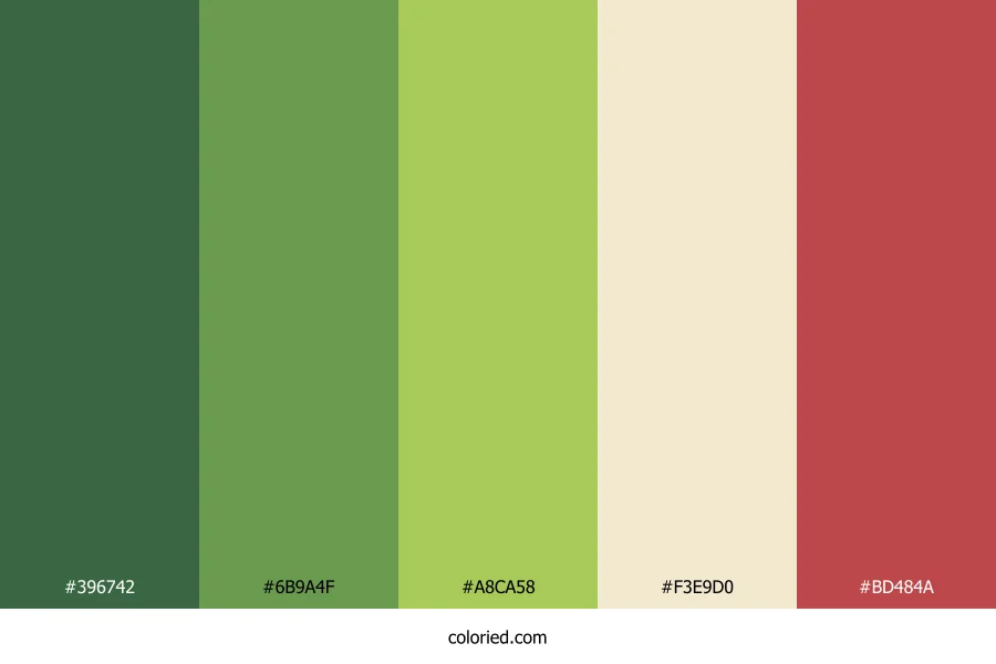 ![]() | #396742 | 57, 103, 66 | 132, 29%, 31% | 45%, 0%, 36%, 60% | oklch(0.470 0.078 149) |