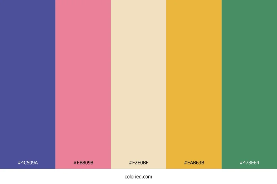 ![]() | #4C509A | 76, 80, 154 | 237, 34%, 45% | 51%, 48%, 0%, 40% | oklch(0.466 0.118 278) |