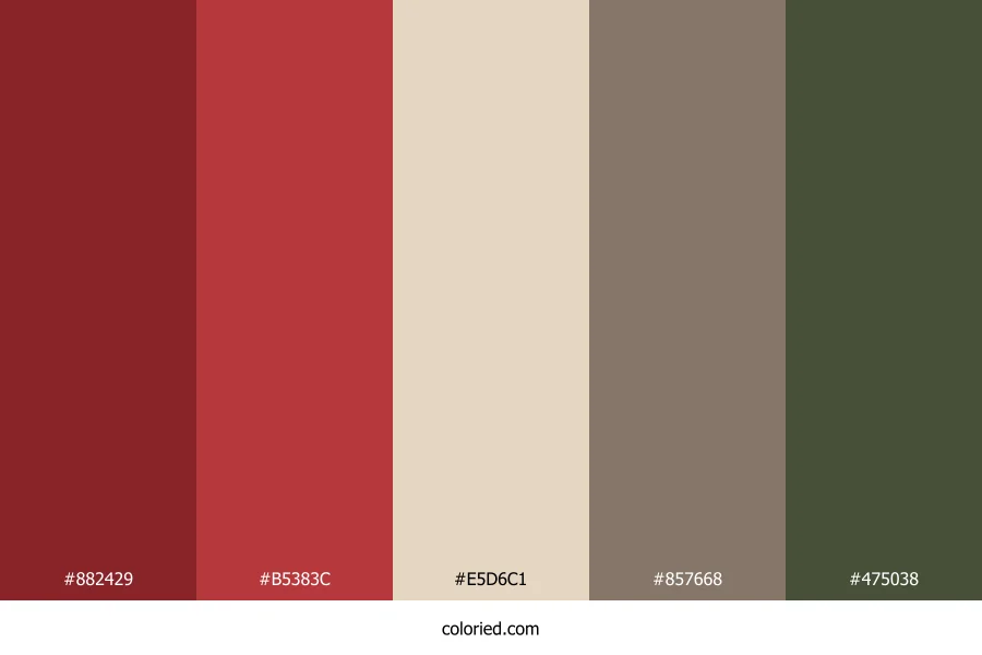 ![]() | #882429 | 136, 36, 41 | 357, 58%, 34% | 0%, 74%, 70%, 47% | oklch(0.422 0.135 23) |