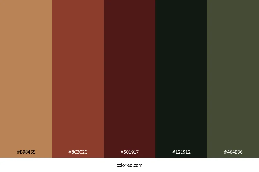 ![]() | #B98455 | 185, 132, 85 | 28, 42%, 53% | 0%, 29%, 54%, 27% | oklch(0.656 0.091 62) |