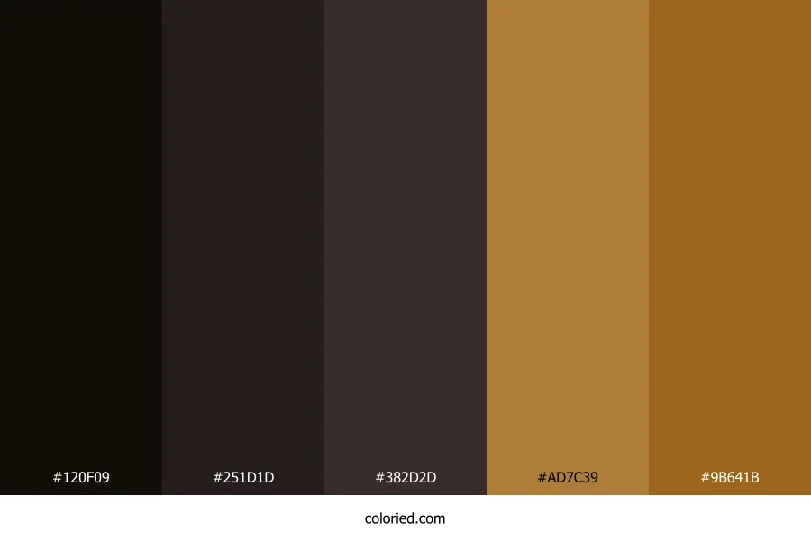 ![]() | #120F09 | 18, 15, 9 | 40, 33%, 5% | 0%, 17%, 50%, 93% | oklch(0.170 0.013 85) |