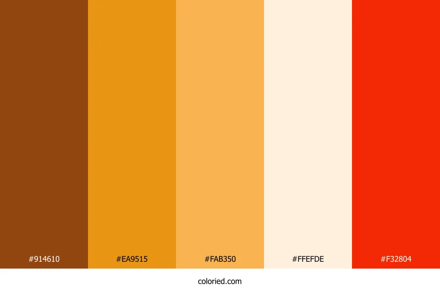 ![]() | #914610 | 145, 70, 16 | 25, 80%, 32% | 0%, 52%, 89%, 43% | oklch(0.481 0.118 50) |