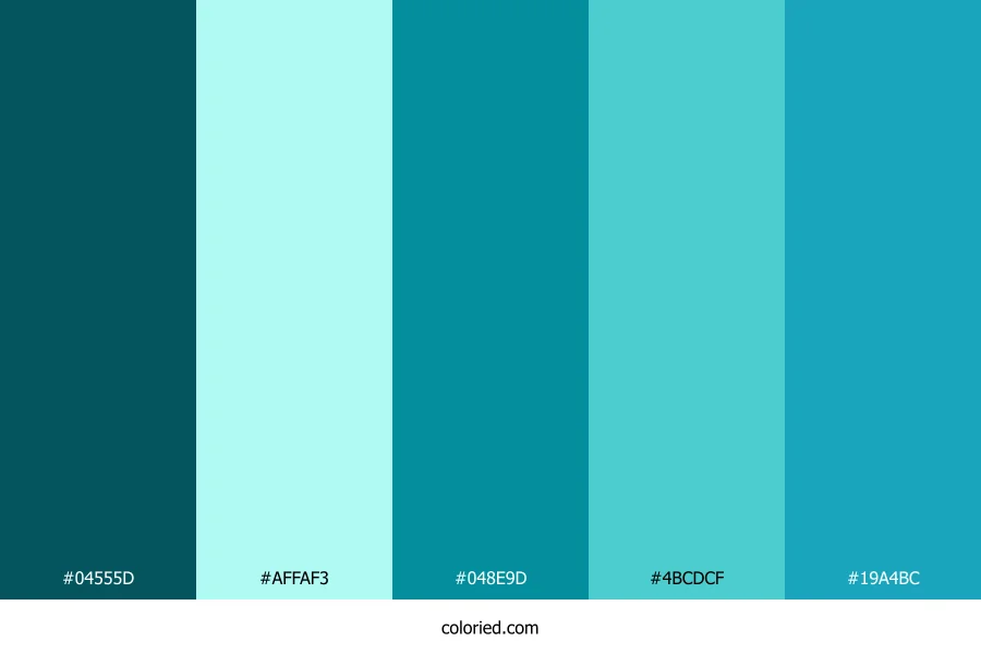 | #048E9D | 4, 142, 157 | 186, 95%, 32% | 97%, 10%, 0%, 38% | oklch(0.592 0.101 208) | |