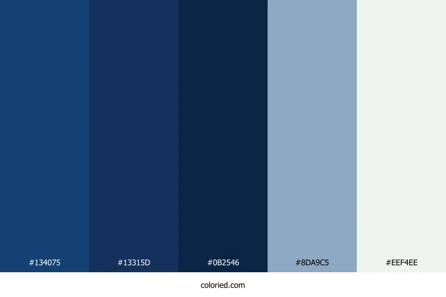 | #13315D | 19, 49, 93 | 216, 66%, 22% | 80%, 47%, 0%, 64% | oklch(0.317 0.086 258) | |