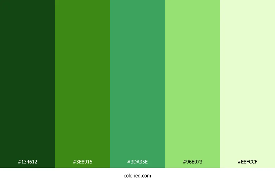 | #3E8915 | 62, 137, 21 | 99, 73%, 31% | 55%, 0%, 85%, 46% | oklch(0.560 0.162 138) | |