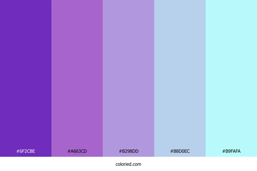| #B298DD | 178, 152, 221 | 263, 50%, 73% | 19%, 31%, 0%, 13% | oklch(0.728 0.102 301) | |