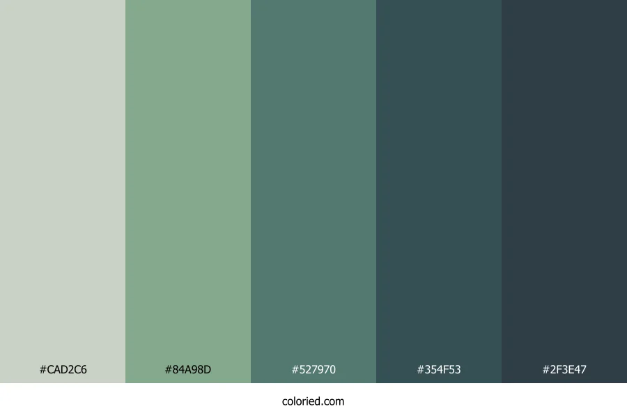 | #354F53 | 53, 79, 83 | 188, 22%, 27% | 36%, 5%, 0%, 67% | oklch(0.408 0.032 208) | |