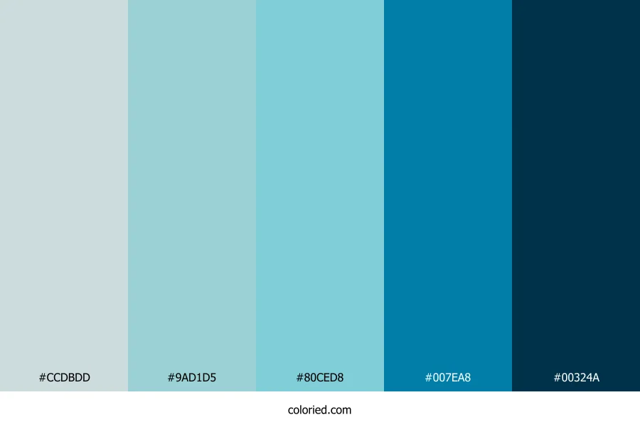 | #80CED8 | 128, 206, 216 | 187, 53%, 67% | 41%, 5%, 0%, 15% | oklch(0.805 0.078 206) | |