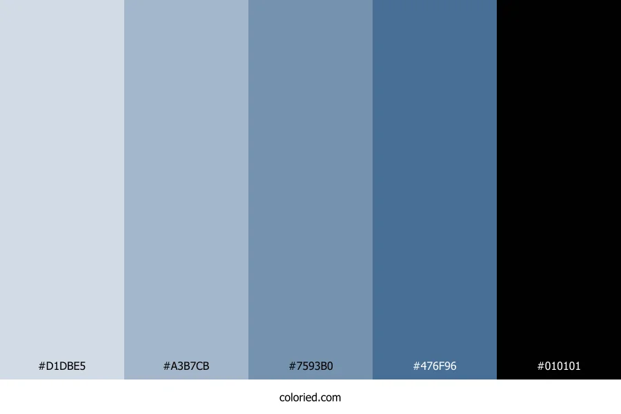 | #7593B0 | 117, 147, 176 | 209, 27%, 57% | 34%, 16%, 0%, 31% | oklch(0.651 0.055 248) | |