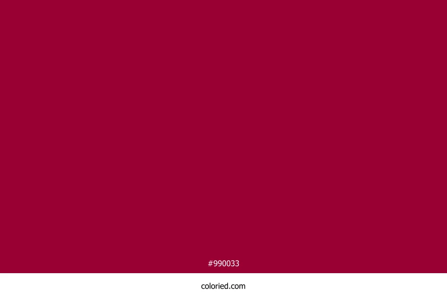 ![]() | #990033 | 153, 0, 51 | 340, 100%, 30% | 0%, 100%, 67%, 40% | oklch(0.435 0.174 14) |