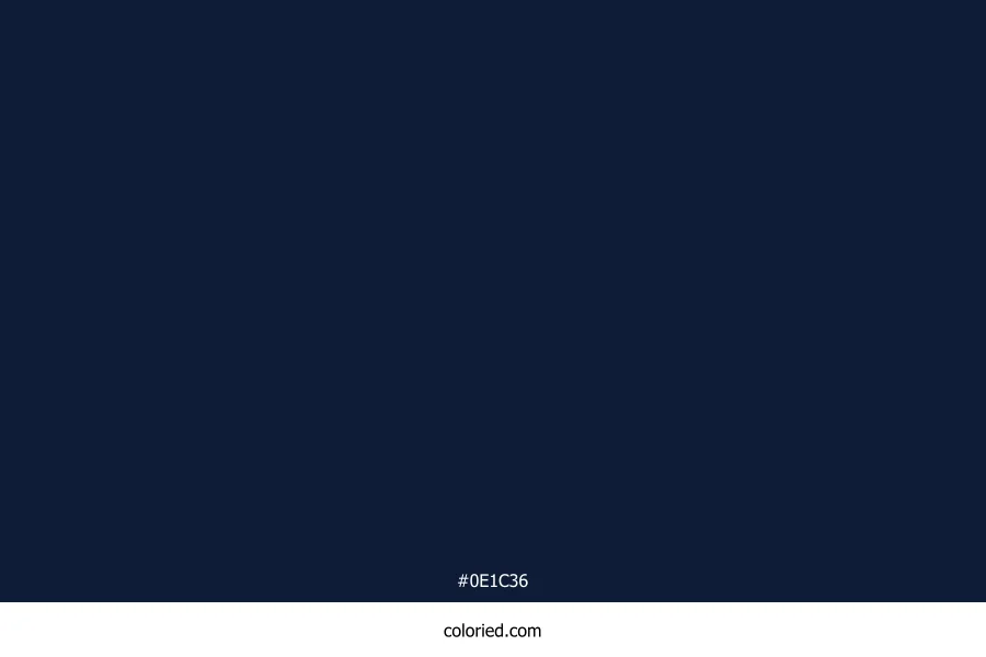 ![]() | #0E1C36 | 14, 28, 54 | 219, 59%, 13% | 74%, 48%, 0%, 79% | oklch(0.230 0.054 262) |
