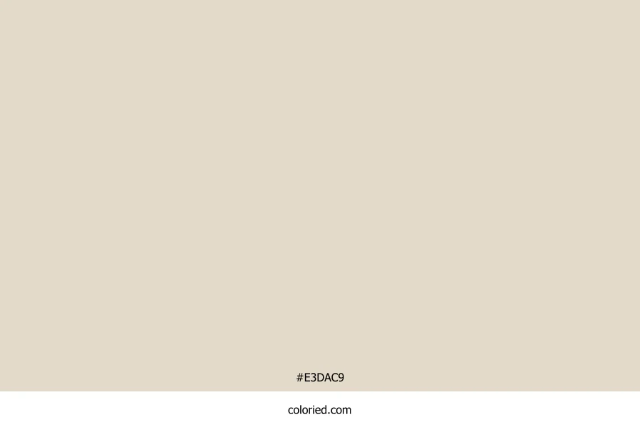 ![]() | #E3DAC9 | 227, 218, 201 | 39, 32%, 84% | 0%, 4%, 11%, 11% | oklch(0.891 0.025 83) |
