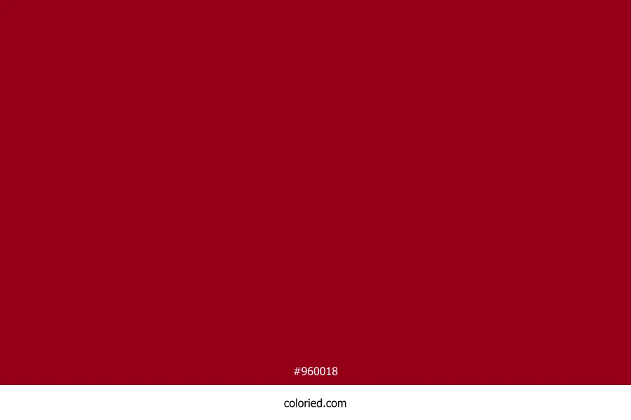 ![]() | #960018 | 150, 0, 24 | 350, 100%, 29% | 0%, 100%, 84%, 41% | oklch(0.424 0.172 24) |
