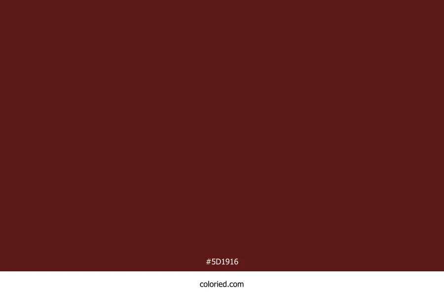 ![]() | #5D1916 | 93, 25, 22 | 3, 62%, 23% | 0%, 73%, 76%, 64% | oklch(0.325 0.100 27) |