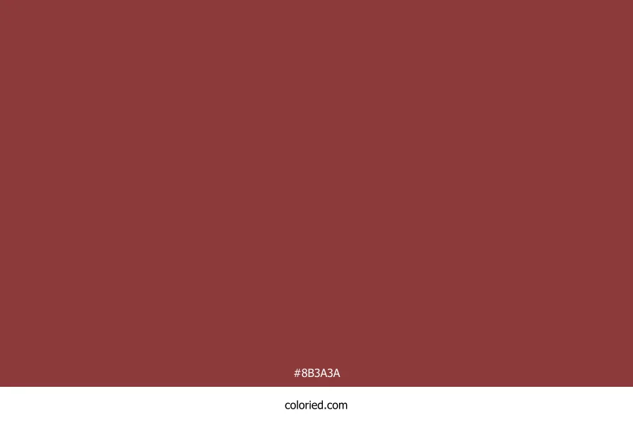 ![]() | #8B3A3A | 139, 58, 58 | 0, 41%, 39% | 0%, 58%, 58%, 45% | oklch(0.458 0.111 22) |