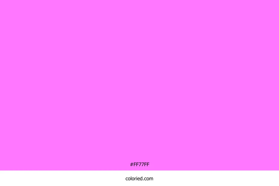 ![]() | #FF77FF | 255, 119, 255 | 300, 100%, 73% | 0%, 53%, 0%, 0% | oklch(0.776 0.228 327) |