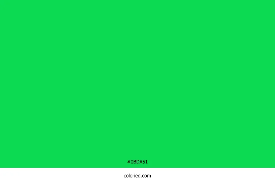 ![]() | #0BDA51 | 11, 218, 81 | 140, 90%, 45% | 95%, 0%, 63%, 15% | oklch(0.774 0.229 147) |