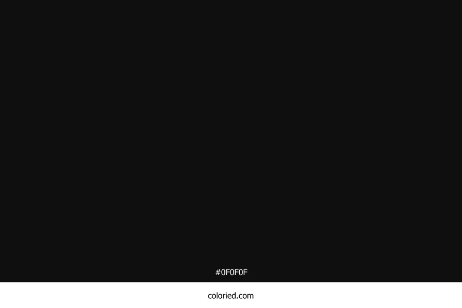 ![]() | #0F0F0F | 15, 15, 15 | 0, 0%, 6% | 0%, 0%, 0%, 94% | oklch(0.168 0.000 263) |