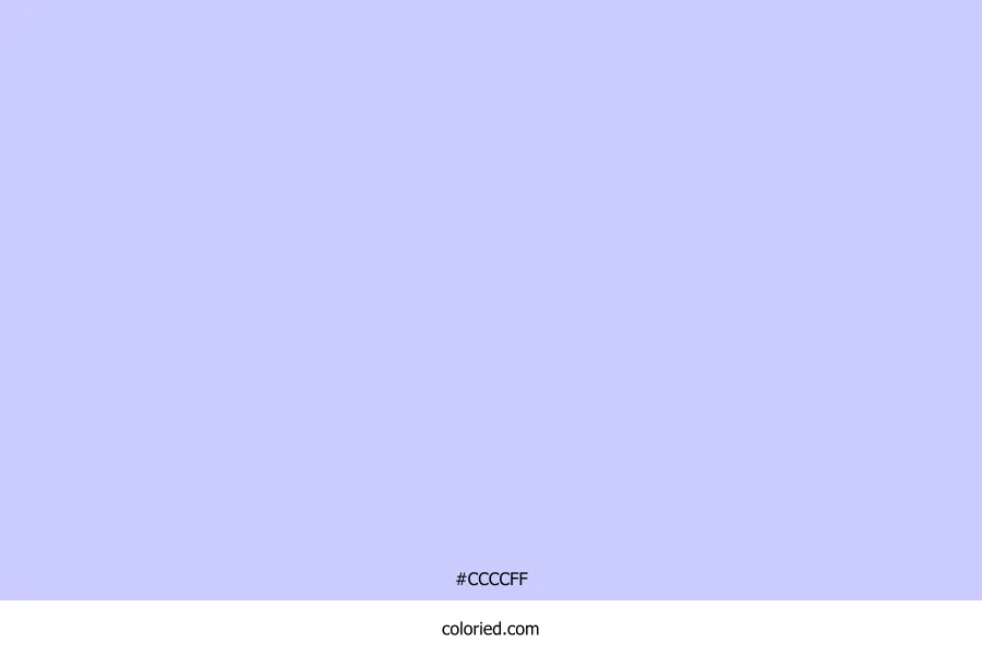 ![]() | #CCCCFF | 204, 204, 255 | 240, 100%, 90% | 20%, 20%, 0%, 0% | oklch(0.862 0.071 285) |