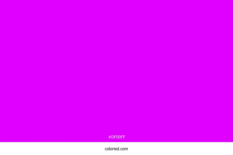 ![]() | #DF00FF | 223, 0, 255 | 292, 100%, 50% | 13%, 100%, 0%, 0% | oklch(0.654 0.312 321) |