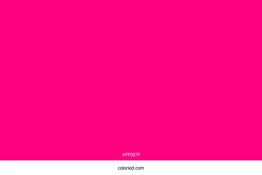 ![]() | #FF007F | 255, 0, 127 | 330, 100%, 50% | 0%, 100%, 50%, 0% | oklch(0.645 0.260 3) |