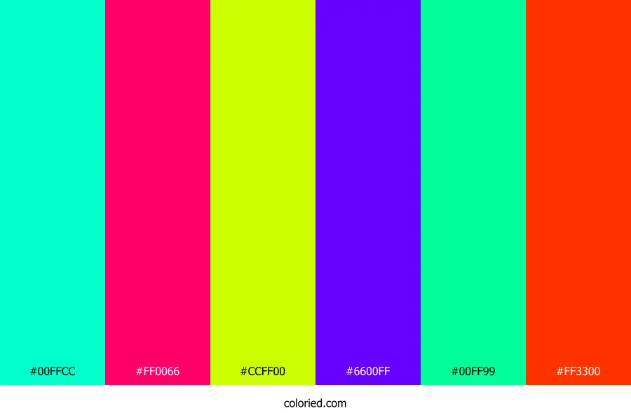 | #FF0066 | 255, 0, 102 | 336, 100%, 50% | 0%, 100%, 60%, 0% | oklch(0.639 0.255 10) | |
