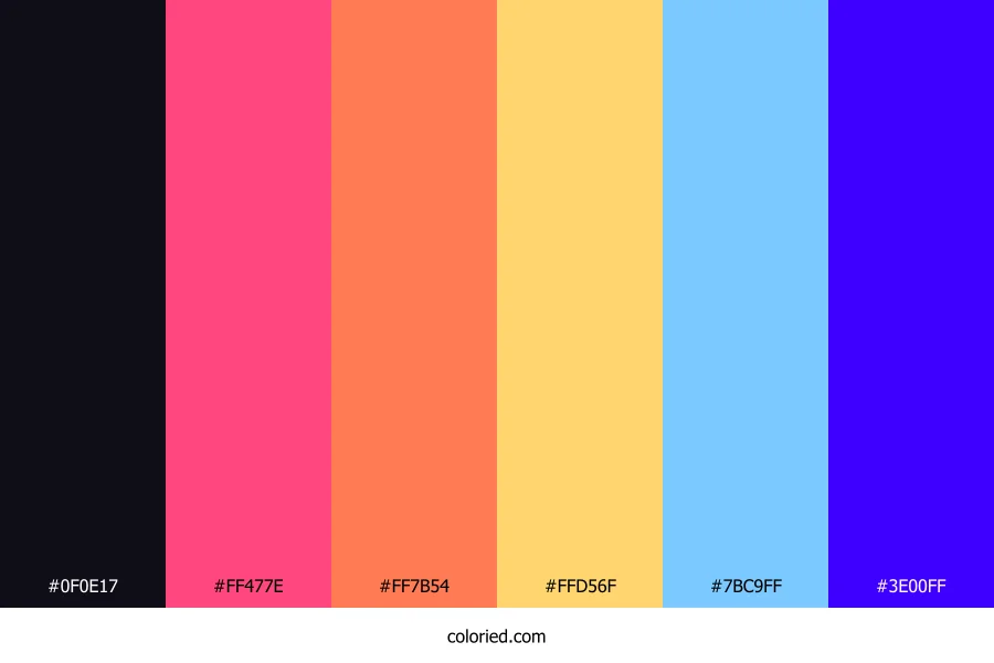 ![]() | #0F0E17 | 15, 14, 23 | 247, 24%, 7% | 35%, 39%, 0%, 91% | oklch(0.170 0.019 289) |