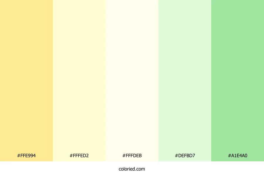 | #DEFBD7 | 222, 251, 215 | 108, 82%, 91% | 12%, 0%, 14%, 2% | oklch(0.958 0.056 140) | |