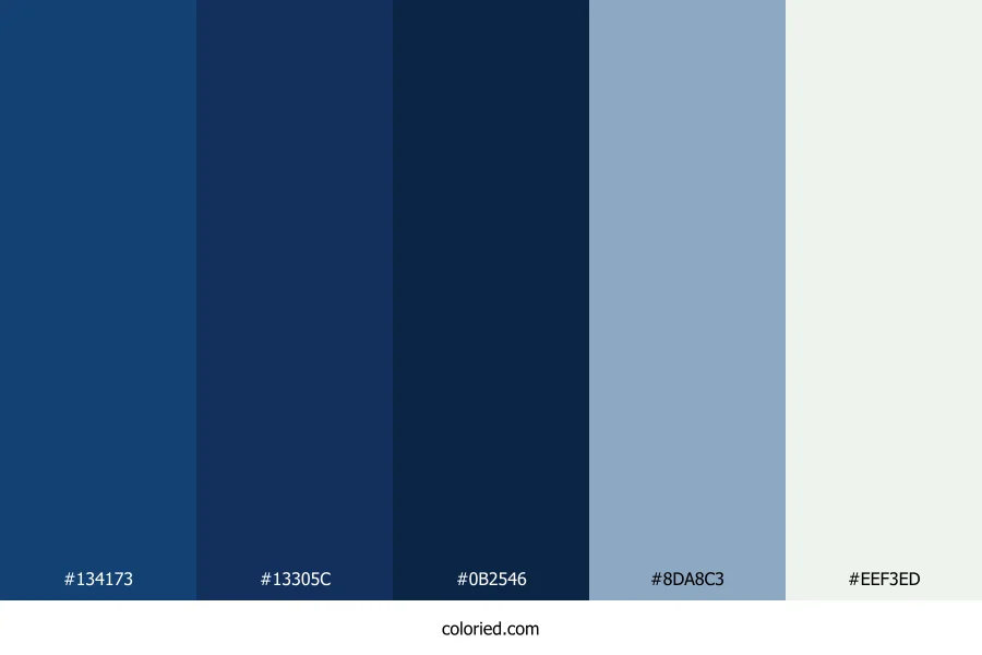 | #13305C | 19, 48, 92 | 216, 66%, 22% | 79%, 48%, 0%, 64% | oklch(0.314 0.086 259) | |