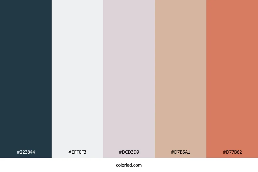 | #D77B62 | 215, 123, 98 | 13, 59%, 61% | 0%, 43%, 54%, 16% | oklch(0.678 0.121 36) |