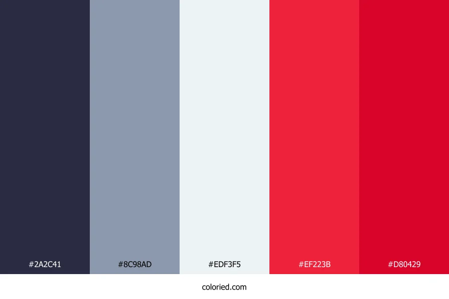 | #EF223B | 239, 34, 59 | 353, 86%, 54% | 0%, 86%, 75%, 6% | oklch(0.612 0.232 23) | |