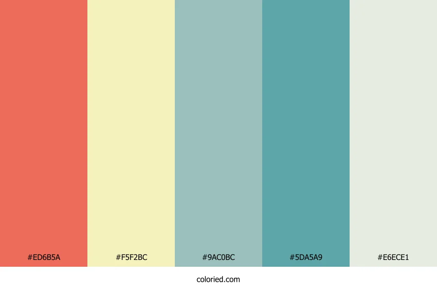 | #5DA5A9 | 93, 165, 169 | 183, 31%, 51% | 45%, 2%, 0%, 34% | oklch(0.677 0.073 200) | |
