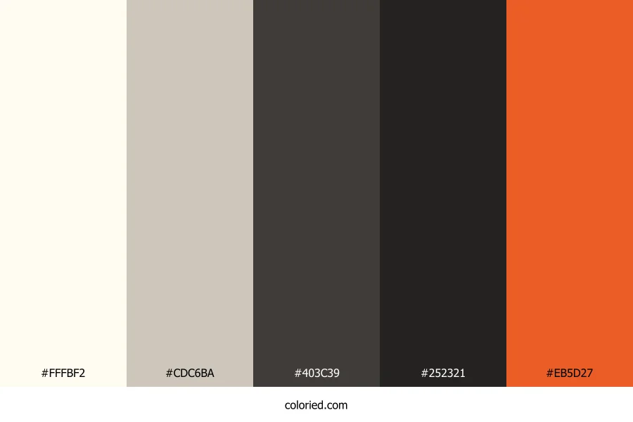 | #252321 | 37, 35, 33 | 30, 6%, 14% | 0%, 5%, 11%, 85% | oklch(0.258 0.005 68) | |