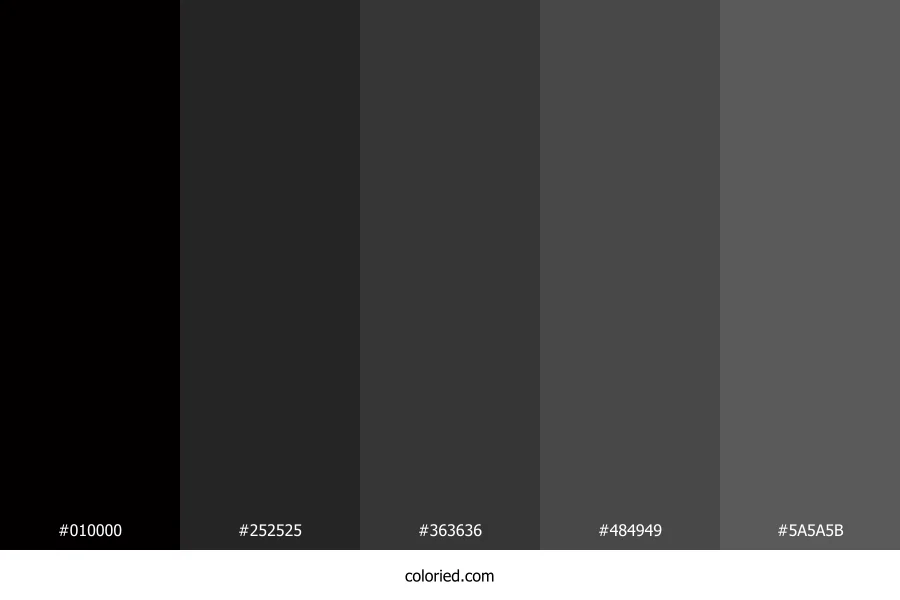 | #5A5A5B | 90, 90, 91 | 240, 1%, 35% | 1%, 1%, 0%, 64% | oklch(0.468 0.002 286) |