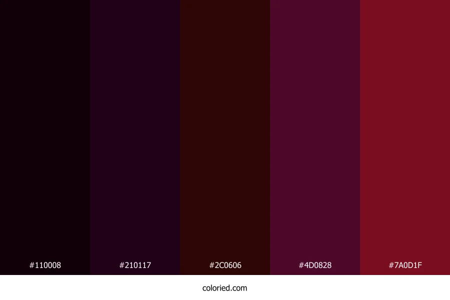 | #4D0828 | 77, 8, 40 | 332, 81%, 17% | 0%, 90%, 48%, 70% | oklch(0.281 0.102 359) | |