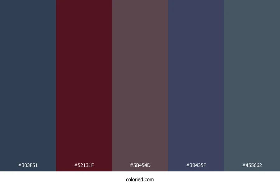 ![]() | #303F51 | 48, 63, 81 | 213, 26%, 25% | 41%, 22%, 0%, 68% | oklch(0.362 0.037 253) |