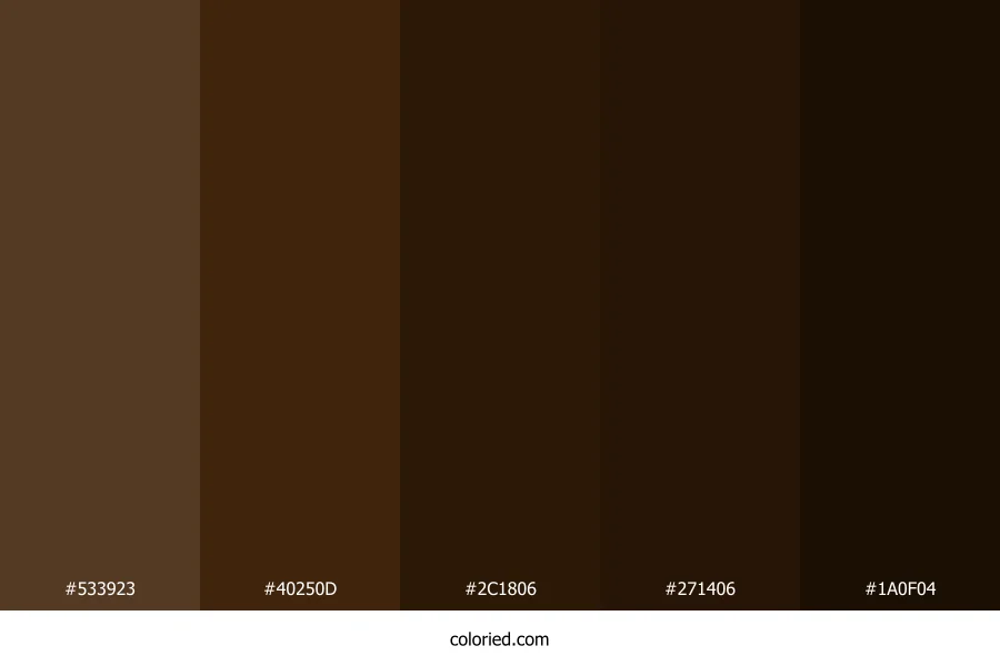 | #1A0F04 | 26, 15, 4 | 30, 73%, 6% | 0%, 42%, 85%, 90% | oklch(0.180 0.029 68) |