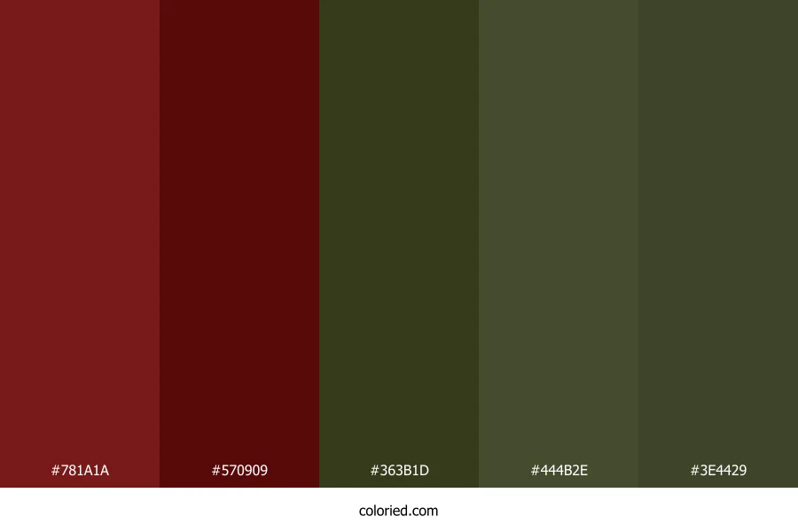 | #3E4429 | 62, 68, 41 | 73, 25%, 21% | 9%, 0%, 40%, 73% | oklch(0.373 0.044 119) |